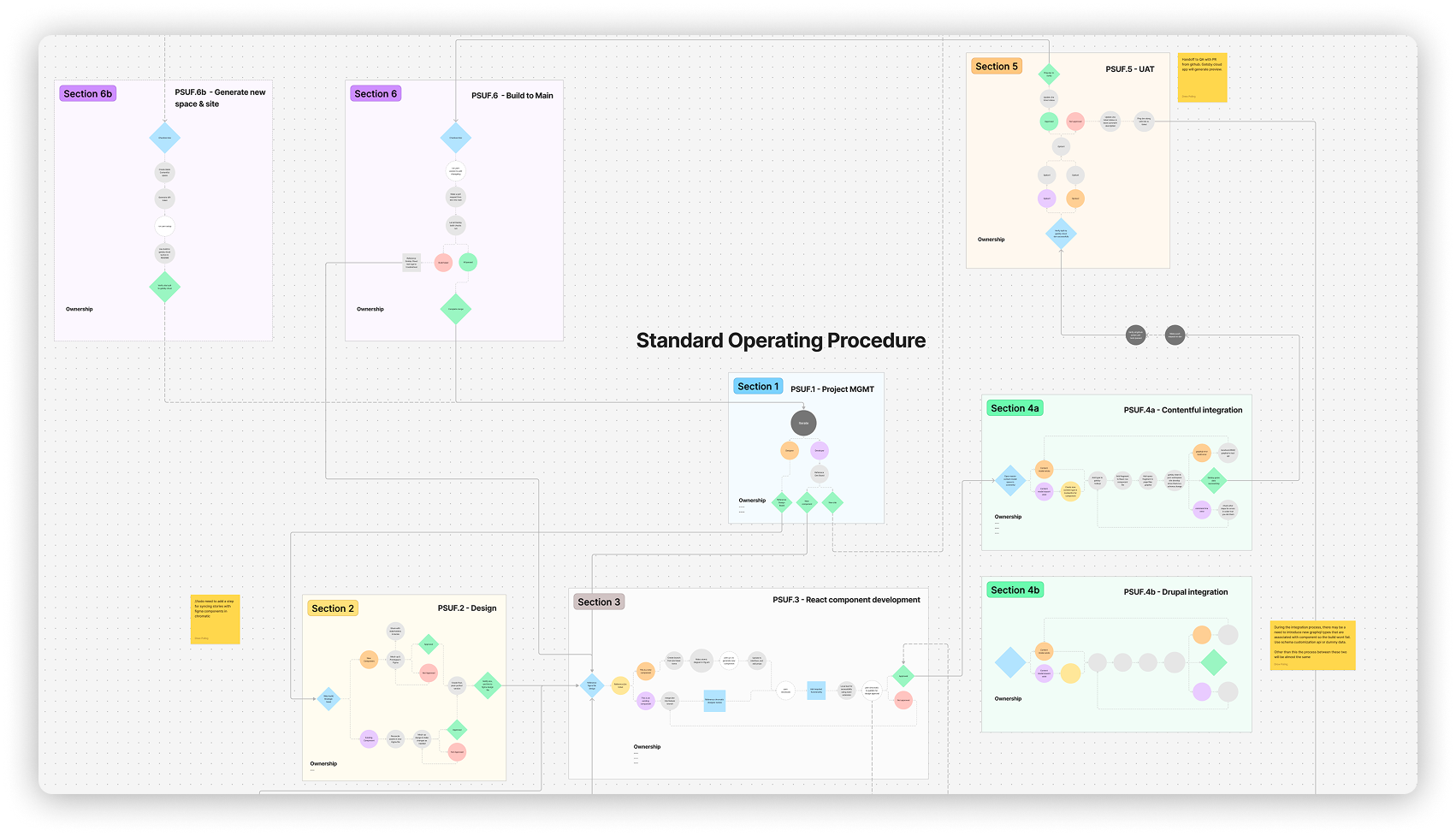 By turning previously informal, tribal workflows into a shared, visual process, the SOP reduced ambiguity, improved cross-team coordination, and made delivery more predictable. This pipeline acts gives a reference point to any developer, designer, or project manager that is tasked with contributing to the platform.